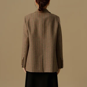 1. Dushu Plus Size 40,4% Weibliche Wollblazer Standard -Gitter 2024 Winter Retro Casual Blazer Blazer Blazer Casaco 24ds84354